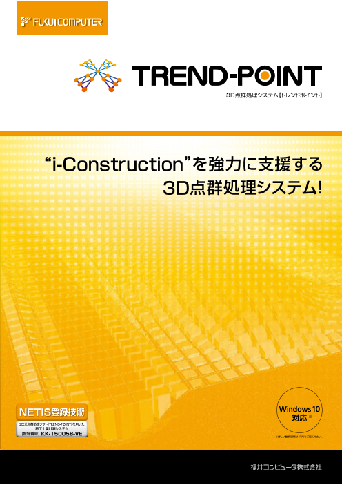 普及が進む"i-Construction"への対応を支援する「TREND-POINT」。 ICT土工、舗装工、浚渫工の出来形管理要領に準拠した成果作成が行えるだけでなく、 多種多彩なフィルター機能(ごみ取り)や断面作成機能、メッシュ土量計算による ...