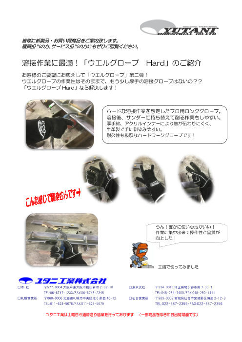 板金溶接時の操作性って気になりません? 厚手の溶接手袋だと、ゴワゴワして作業し難くないですか? 「ウエルグローブ」なら解決します! ハードな溶接作業を想定したプロ用ロングタイプグローブ。 溶接後、グラインダーに持ち替えて削る作業もしやすい。 ...