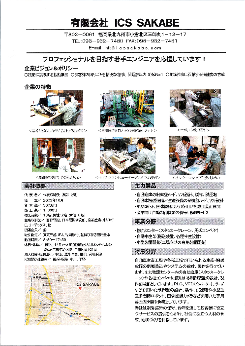 そのシンプルな動きの中にも私たちの未来をすばらしいものへ変えるヒントが見つかるかもしれません。 ICS SAKABEの“出前教育(出前セミナー)”は皆様と伴に明るいロボット社会を考えるお手伝いをいたします。 ◆詳細はカタログをダウンロードしてご覧...