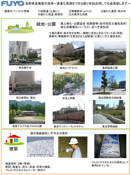 ◆超軽量(比重0.1) ◆無機質材(pH7.0) ◆優れた通気・排水性 ◆優れた保温・断熱性 ◆水質浄化効果 ◆詳細は、カタログをダウンロードしてご覧ください。