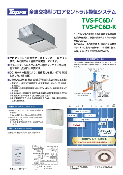 熱エネルギーのロスを抑え、計画的な換気を行うことで、室内の空気をいつも新鮮に保ち、結露、ダニ、カビの発生を抑制します。 ■フロアセントラル方式で分岐チャンバー、縦ダクト(PS)の必要がなく省施工を実現しています。 ■リターングリルからフィルター等...