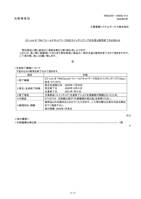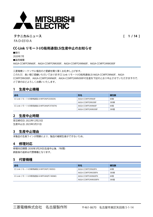 CC-LinkリモートI/O局用通信LSI 生産中止