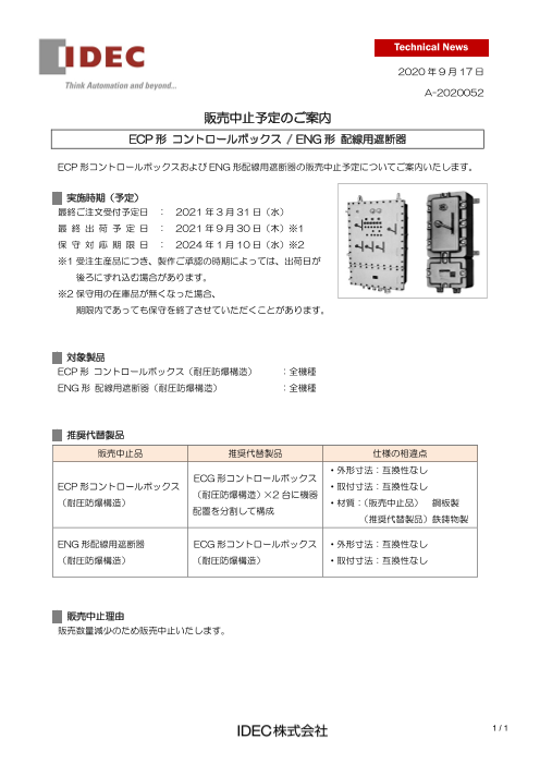 ECP型 コントロールボックス/ENG型 配線用遮断器 販売...