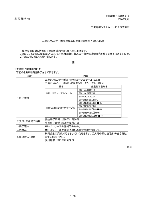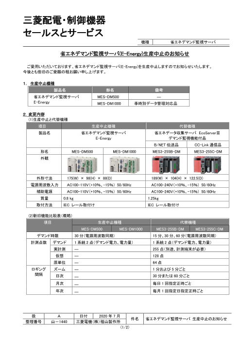 省エネデマンド監視サーバー、メンテナンスツール 生産中止