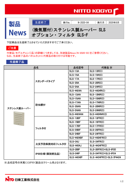 換気扇付きステンレス製ルーバーSLSシリーズ 生産中止