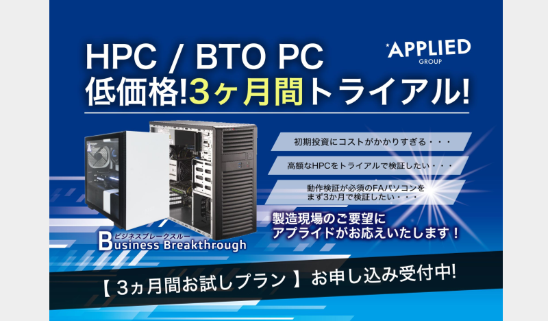アプライド HPC/BTO 低価格3ヵ月お試しトライアル 検証機貸出レンタル