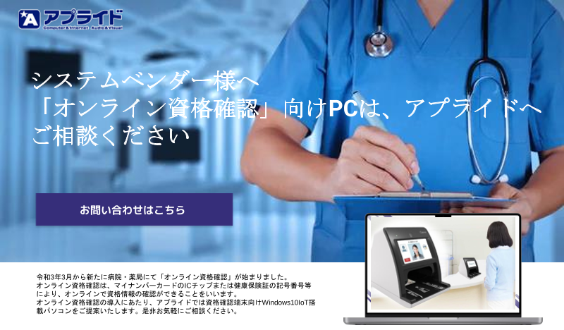 システムベンダー様へ 「オンライン資格確認」向けPCは、アプライドへご相談ください