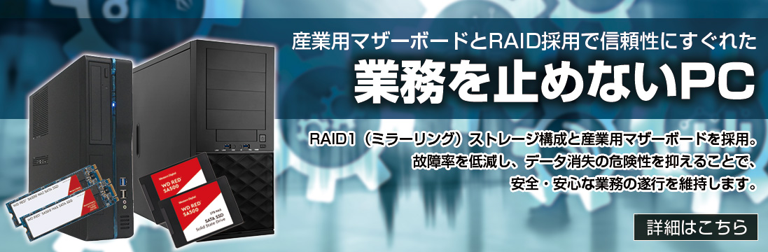 業務を止めないPC(高耐久&RAID構成)高耐久・高品質の部材を使用!ストレージの冗...