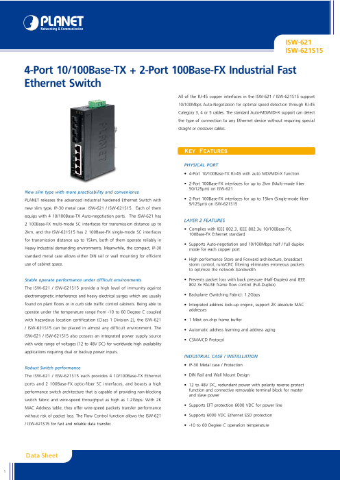 4ポート10/100Base-TX+2ポート100Base-FX,-10-60℃