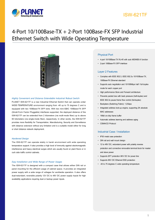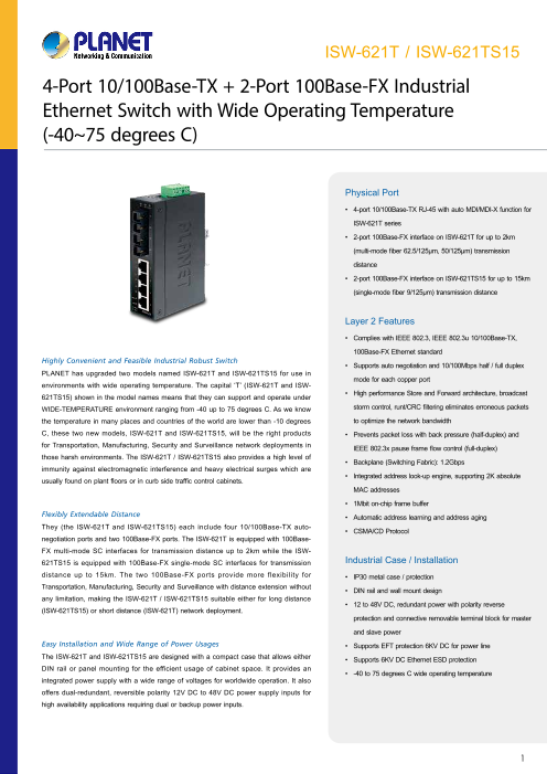 4ポート10/100Base-TX+2ポート100Base-FX,-45-75℃