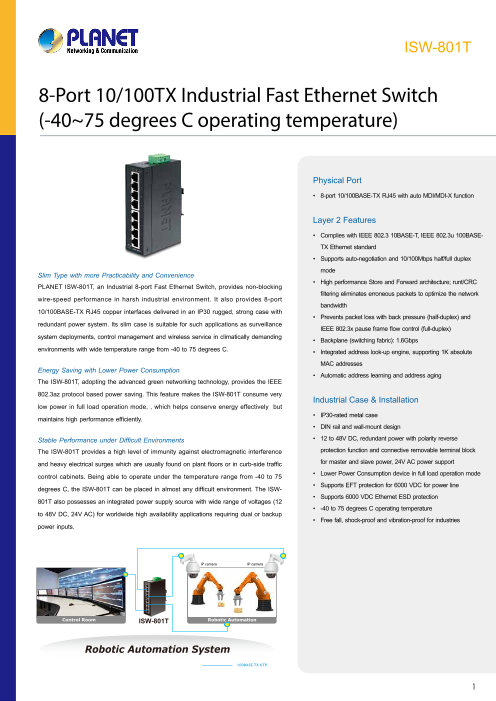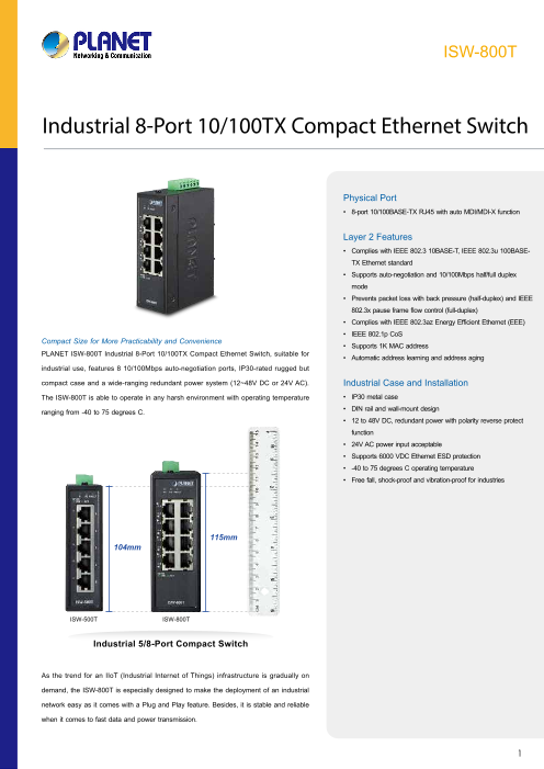 8ポート10/100TX, -40-75℃