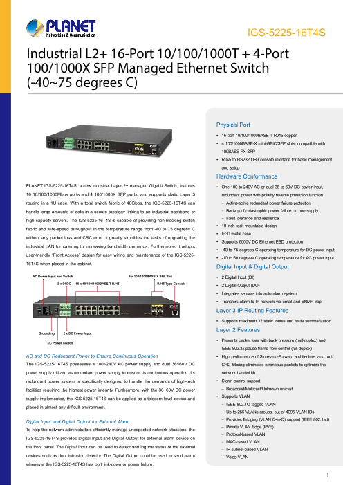 産業用 L2+ 16ポート 10/100/1000T + 4ポート 100/1000X SFP マネージドイーサネットスイッチ (-40~75 ℃)