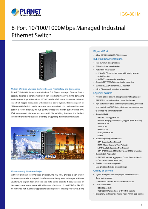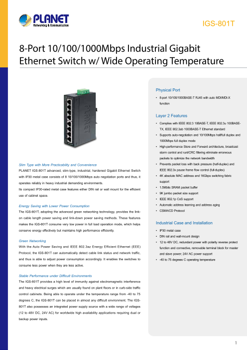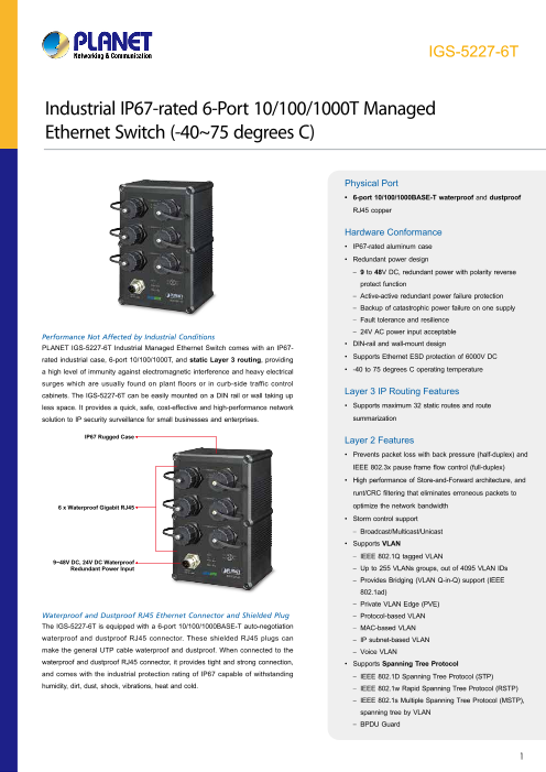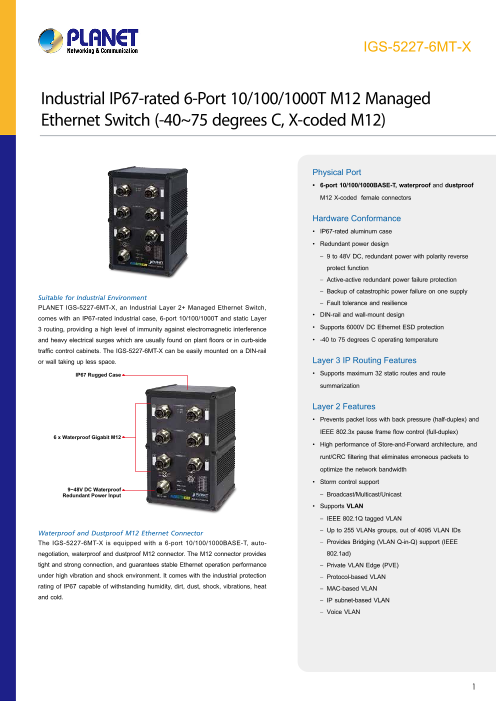 6ポート10/100/1000T マネージドスイッチ, M12コネクタ, -40-75℃