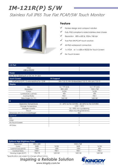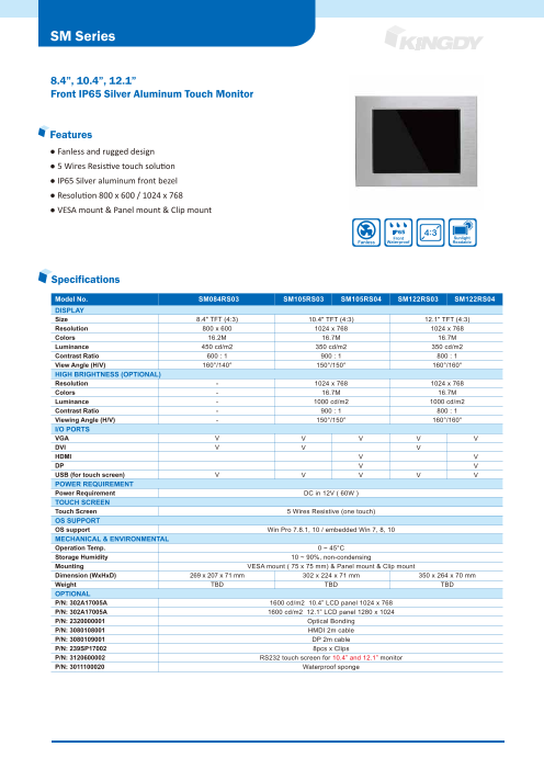 <特長> ・12.1インチTFT (4:3) ・全面防塵防水 IP65 ・筐体:ステンレス(SUS304)シャーシ ・解像度:800 x 600 / 1024 x 768 ・輝度:450 / 500 cd/m2 ・視野角 160°(H)、15...