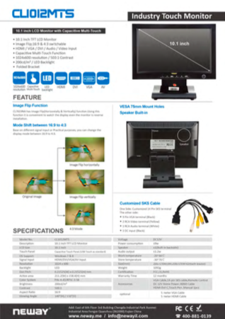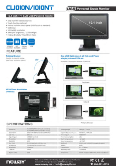10.1インチワイド液晶モニタ(16:9) USB入力、タッチパネル(NTのみ対応) (10.1 inch TFT LCD USB Powered monitor)