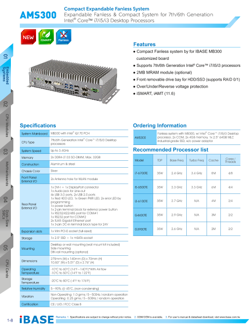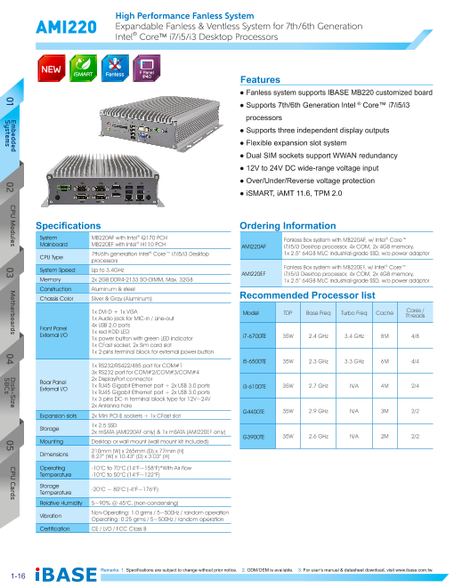 組込みシステム向け、第7/6世代 Core i7/i5/i3 CPU搭載可能、ファン...
