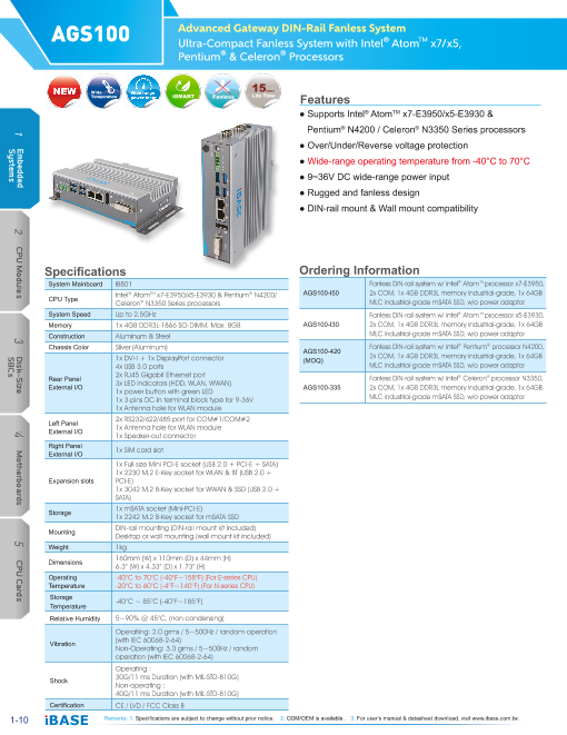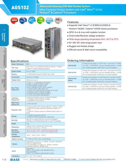 組込システム向 Atom x7-E3950/x5-E3930/Pentium N42...