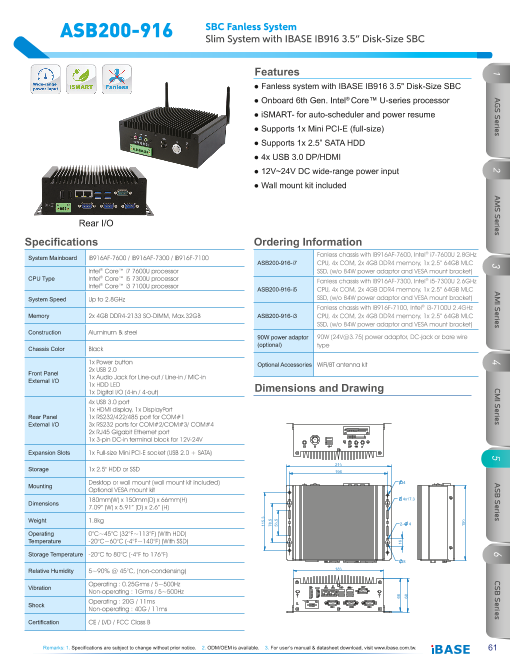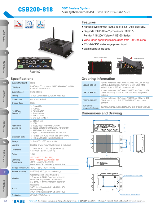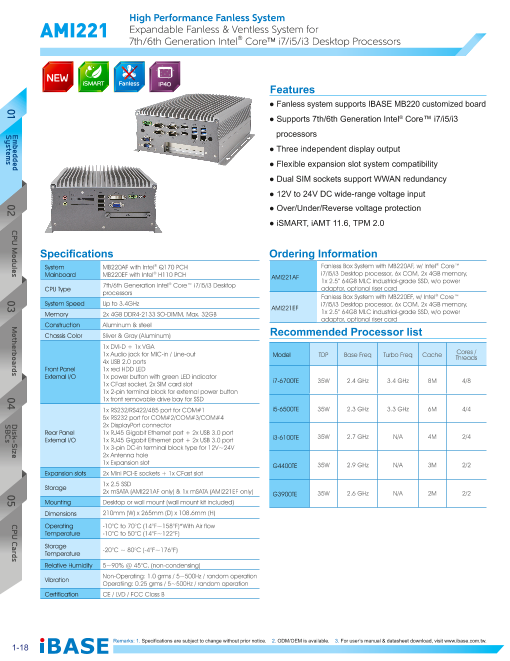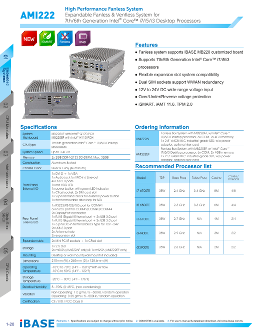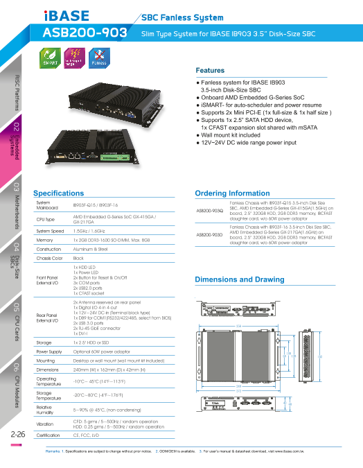 特長 ■幅240×高さ42×奥行162mm 1.63リットル ■OnBoard AMD Embedded GX-217GA ■ファンレス動作 ■2.5" HDD, Cfast, Mini PCI-E x 2 ■iSMART auto-sched...