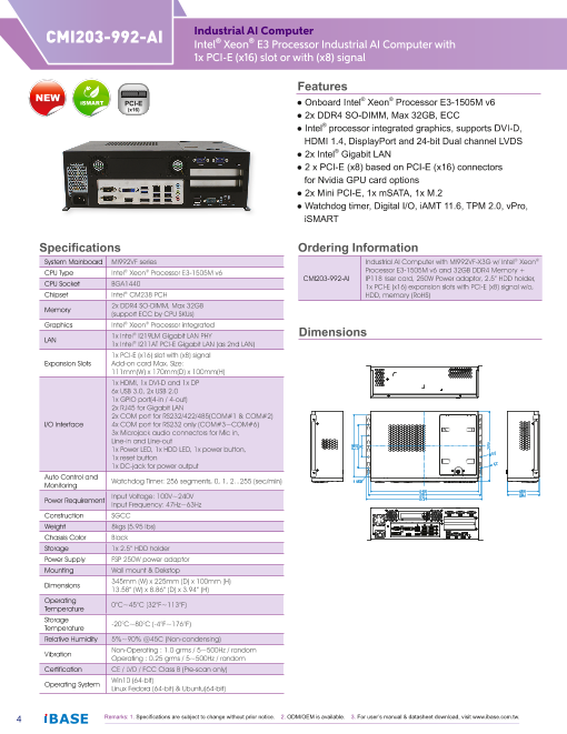 産業用AIコンピュータ、第7世代Xeon E3-1505M v6モバイルCPU搭載