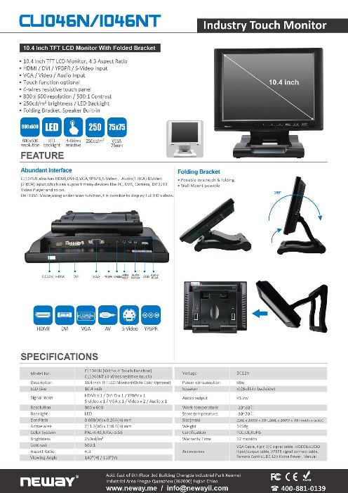10.1インチワイド液晶モニター16:10 入力(HD-SDI,HDMI)、物理画素...