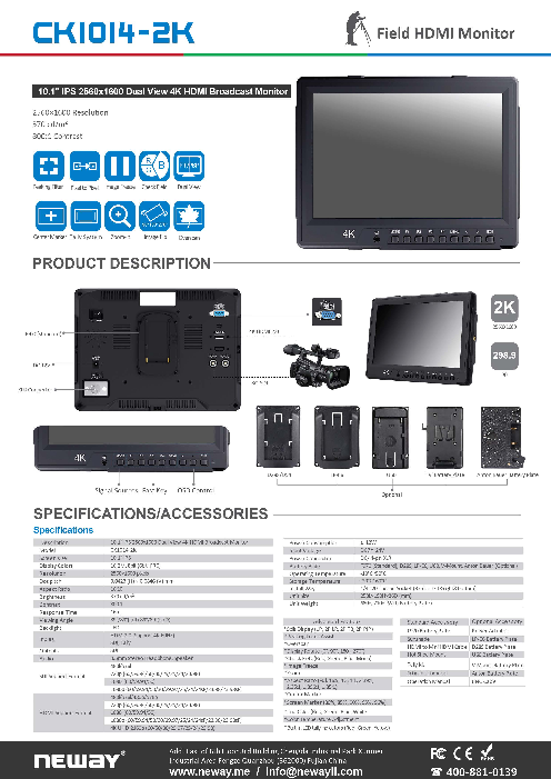 特長 ・4K UHD/フルHDカメラ,映画撮影などのモニター用途 ・物理画素 2560x1600 2K IPS液晶パネル LEDバックライト ・広視野角 89°/89°(L/R) 89°/89°(U/D) ・高解像度表示(最大3840 x 216...