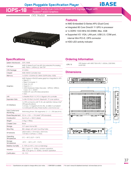 OPS準拠 デジタルサイネージ向け、AMD T56N APU搭載