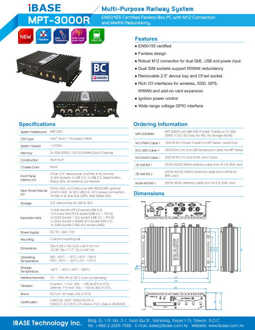 鉄道向け、Atom E3845 モバイルCPU搭載