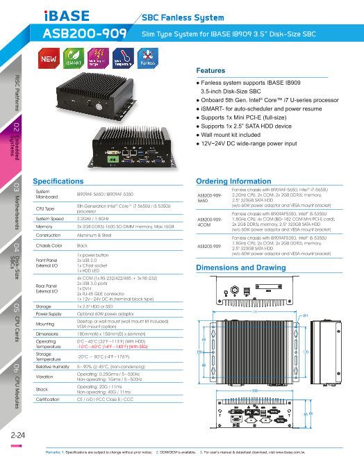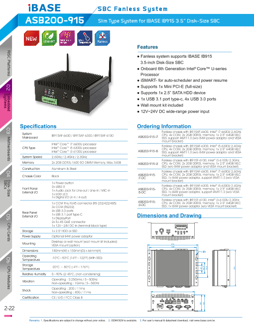 特長 ■幅180×高さ66×奥行150mm 1.78リットル ■OnBoard 第6世代 Core i7 6600U /i5 6300U /i3 6100U ■ファンレス動作温度 ■2.5" HDD, Mini PCI-E(full-size) ...