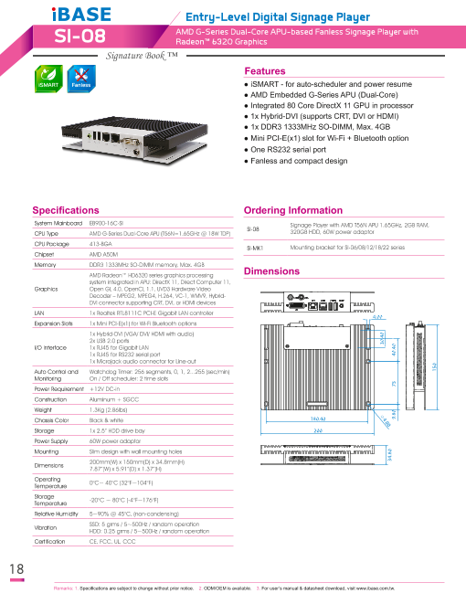 特長 ■幅200×高さ30×奥行119mm 0.72リットル ■AMD GX-224IJ 2.4GHz APU ■Open Pluggable仕様 ■AMD Radeon R4E グラフィックス ■iSMART EuP/ErP power s...