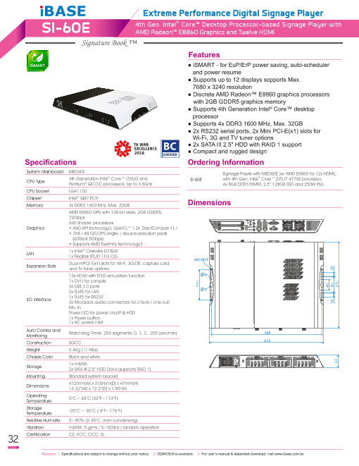 デジタルサイネージ向け、第4世代 Core i7 搭載、AMD Radeon E88...