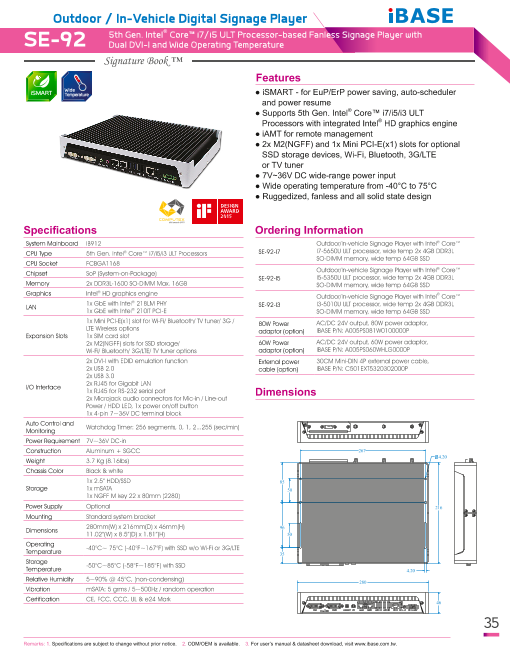 第5世代 Core i7/i5/i3 ULT CPU搭載、拡張動作温度対応 -40~...