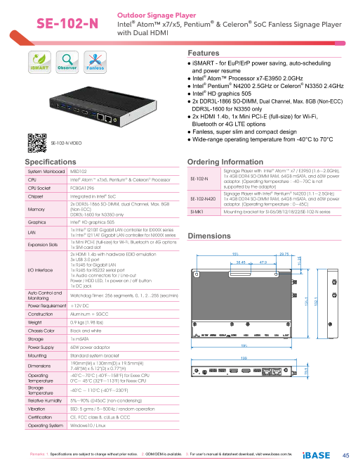 デジタルサイネージ向け、Atom x7-E3950/Pentium N4200搭載、...