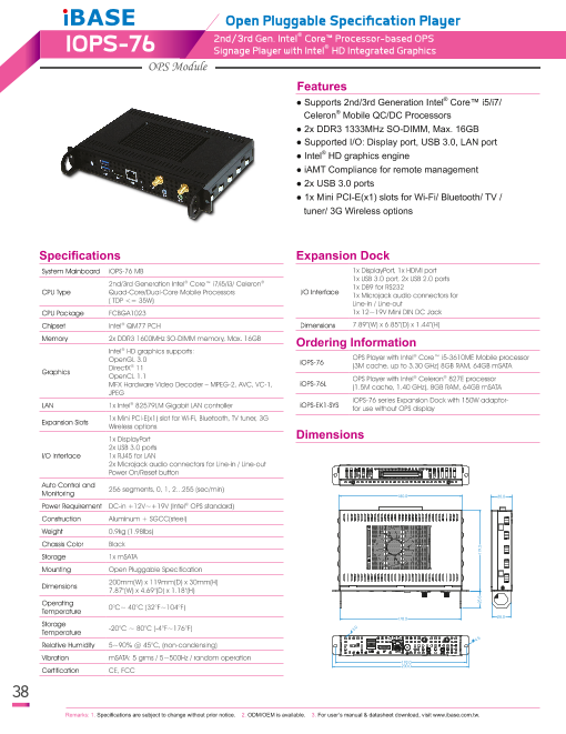 OPS準拠 デジタルサイネージ向け、AMD GX-224IJ/第7世代 Core i...