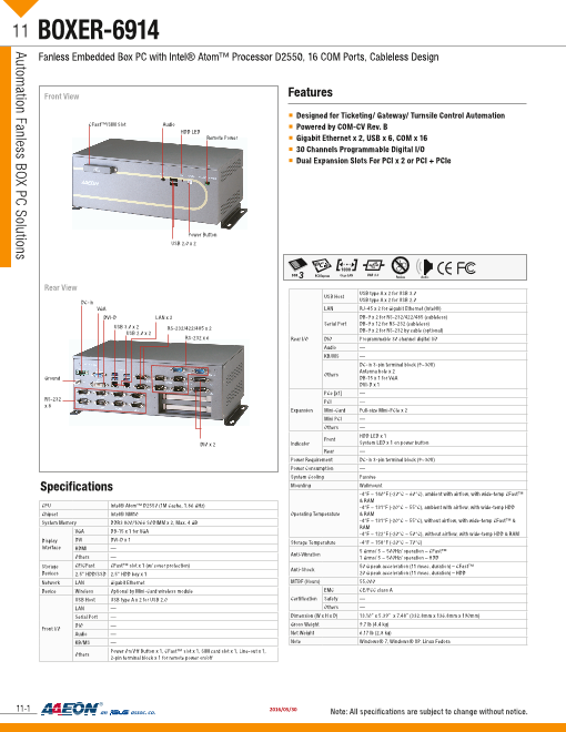 特長 ■幅332.8×高さ136.8×奥行190mm 8.65リットル ■Atom D2550 1.86GHz CPU ファンレス ■拡張スロット 2 PCI / 1 PCI-E[x1] + 1 PCI ■14/16 COM / 2 USB3.0...