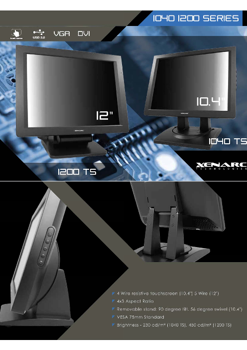 8インチタッチパネル液晶モニター(4:3) VGA入力、ビデオ入力 x 2 (805TSV 8" Touchscreen LED LCD Monitor w/ VGA & AV Inputs)