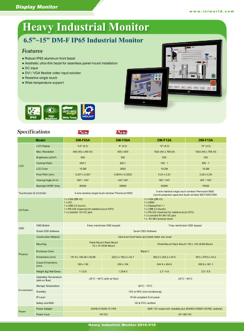特長 ■6.5"~24"高輝度TFT LCD ■入力信号 VGA/DVI(F65A,F08A) ■入力信号 VGA/HDMI/DisplayPort(F12A,F15A) ■入力信号 VGA/HDMI/DisplayPort(F17A,F22A,...