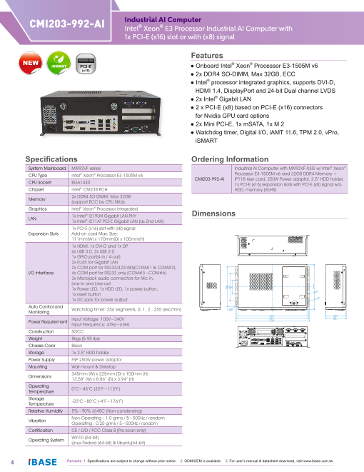 産業用AIコンピュータ、第7世代Xeon E3-1505M v6モバイルCPU搭載