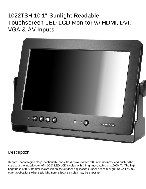 10.1インチワイドタッチパネル液晶モニター(16:9) HDMI入力、DVI入力、VGA入力、ビデオ入力 x 2、太陽光の下でも見える高輝度タイプ (1022TSH 10.1" Sunlight Readable Touchscreen LED LC...