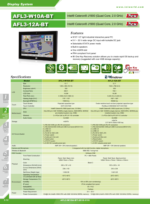 AFL3-W10A-BT 特長 ■10.1" TFT LCD ■ファンレス冷却システム ■低消費電力CPU Celeron J1900 2GHz ■メモリ DDR3L 最大 8GB ■mSATA SSDサポート ■スピーカ内蔵(AMP 2W...