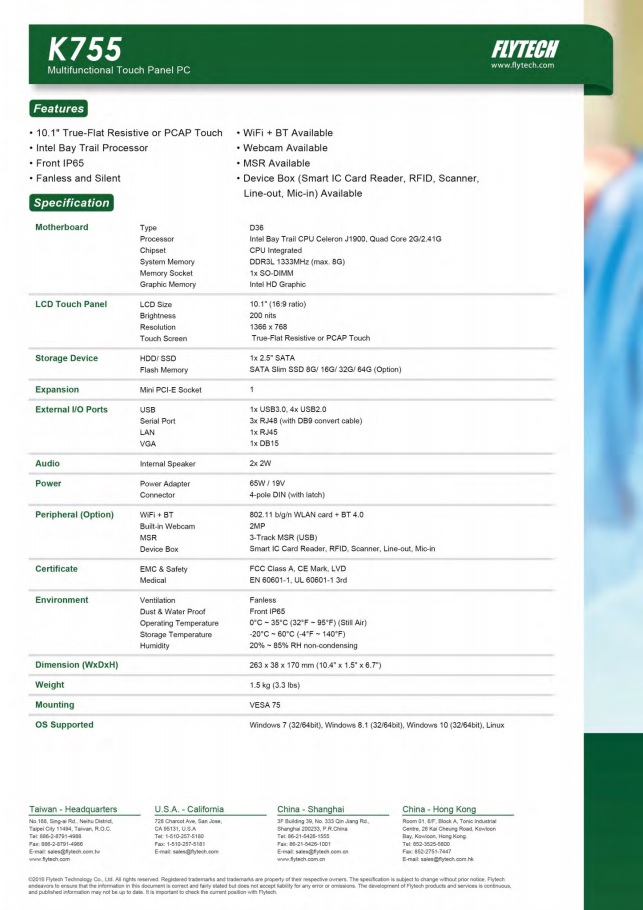 特長 ■10.1インチ TFT LCD (LEDバックライト) ■True Flatデザイン、ファンレス冷却システム ■高性能低消費電力CPU Celeron J1900 2GHz ■メモリ DDR3-1333/DDR3L-1333 最大8GB ...