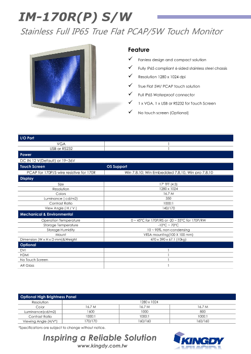 <特長> ・17インチTFT (4:3) ・全面防塵防水 IP65 ・筐体:ステンレス(SUS304)シャーシ ・解像度:1280 x 1024 ・輝度:350cd/m2 ・視野角140°(H)、170°(V) ・タッチパネル 5線抵抗式 ...