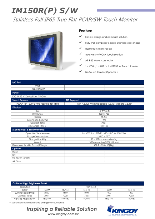 <特長> ・15インチTFT (4:3) ・全面防塵防水 IP65 ・筐体:ステンレス(SUS304)シャーシ ・解像度:1024 x 768 ・輝度:400cd/m2 ・視野角160°(H)、160°(V) ・タッチパネル 5線抵抗式 ...