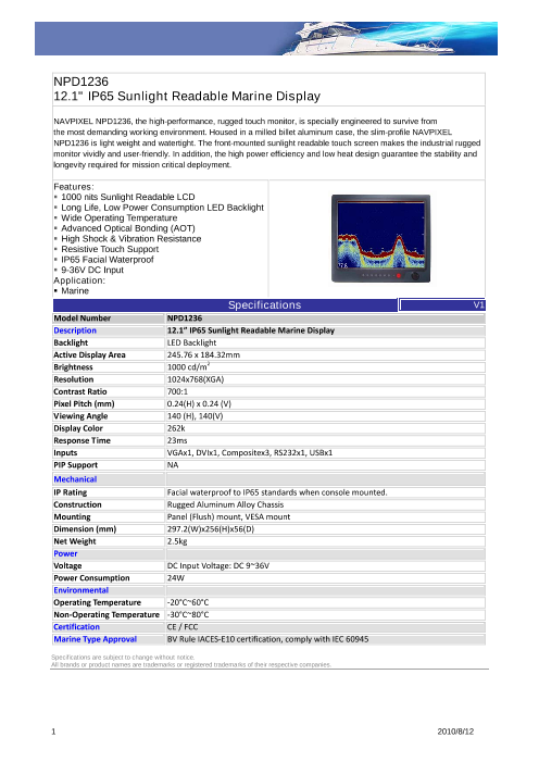 12.1インチ 屋外、船舶用超高輝度液晶モニター VGA,DVI,Composite...