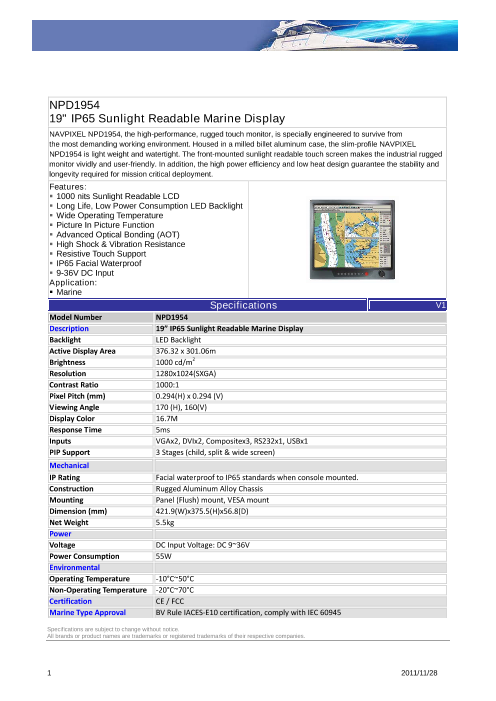 ■19インチカラー TFT LCD ■太陽光の下でも見える超高輝度(1000NIT)液晶パネル採用 ■超寿命LEDバックライト採用 ■反射面減少Advanced Optical Bonding(AOT)採用 ■ワイド動作温度(-10~50℃) ...