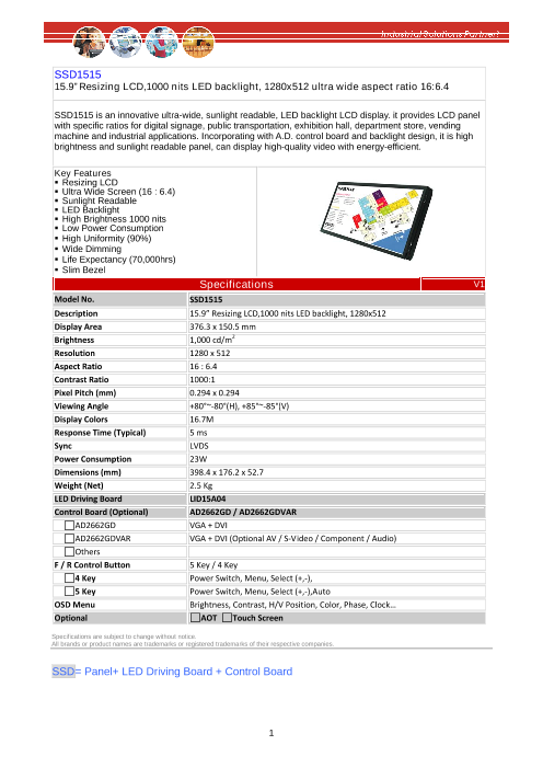 ■15インチカラー TFT LCD ■太陽光の下でも見える超高輝度(1000NIT)液晶パネル採用 ■超寿命LEDバックライト採用 ■反射面減少Advanced Optical Bonding(AOT)採用 ■ワイド動作温度(-20~60℃) ...