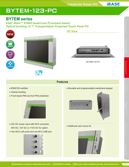BYTEMシリーズ 12.1"鉄道向けファンレスタッチパネルPC