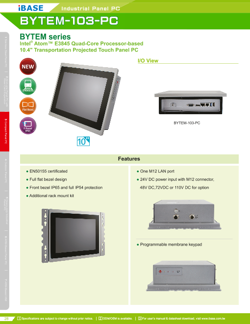 BYTEMシリーズ 10.4"鉄道向けファンレスタッチパネルPC