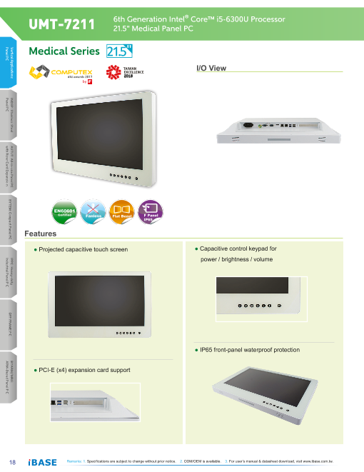 UMTシリーズ 21.5"ファンレス医療用タッチパネルPC