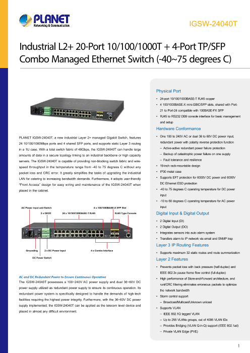 特長 ■24ポート10/100 / 1000BASE-T RJ45銅製 ■100~240V AC 又は、30〜60V DCリダンダント電源(極性逆保護機能付き) ■IP30メタルケース ■19インチラックマウント設計 ■6KV DC電源および6...