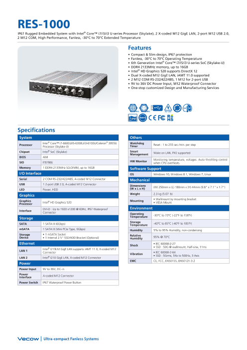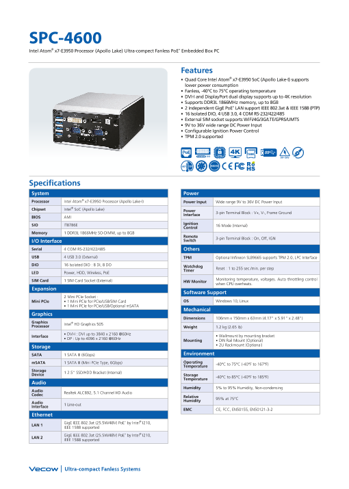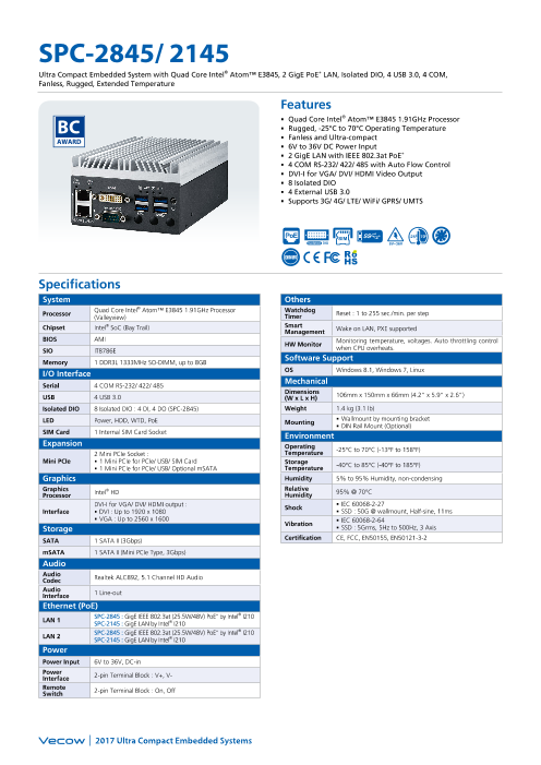 小型組込みシステム向け、Atom E3845 CPU搭載